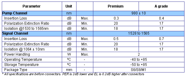 Products > 1x2 980/1550 Fused PM Fiber Standard WDM