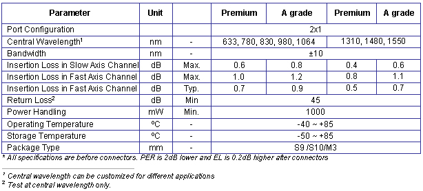 Products > 2x1 Fused PM Fiber Standard Combiner