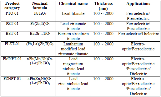 and other electro-optic/ferroelectric/dielectric films are also available.