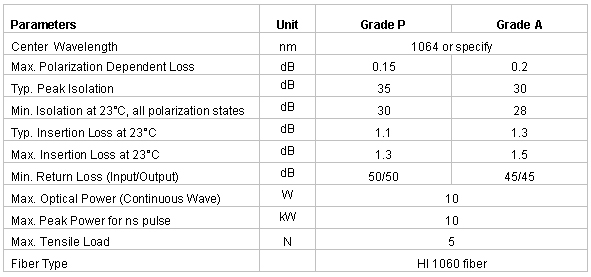 Products >> 10W Polarization Insensitive Isolator for Pulse Applications