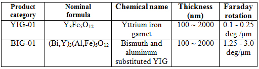 yttrium iron garnet (YIG) and bismuth and aluminum substituted YIG films.